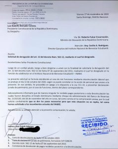 Solicitó al Presidente de la República Luis Abinader derogar el art. 12 decreto 562-12 por medio del cual fue designado como Subdirector del INABIE por el ex presidente Danilo Medina.